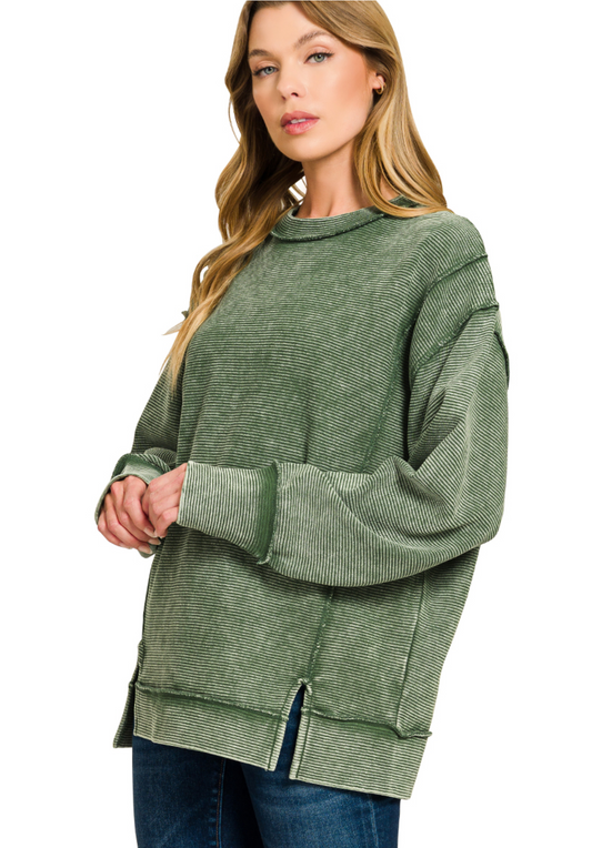 Morgan Pullover Acid Washed Exposed-Seam