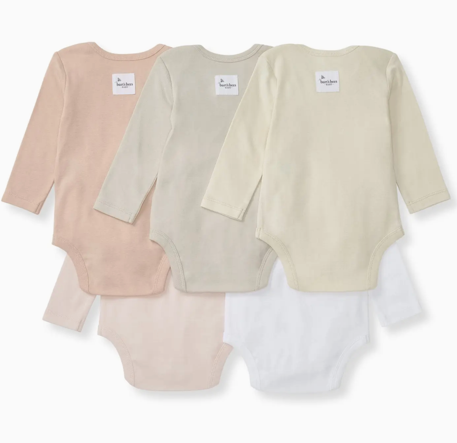 Solid Organic Cotton Long Sleeve Baby Bodysuits 5 Pack - Pink Sand